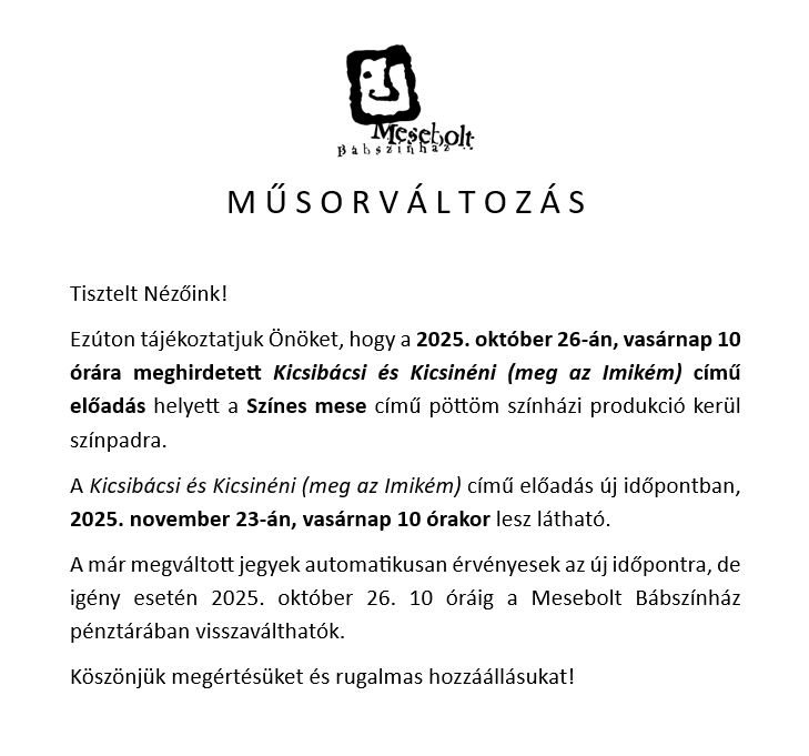 Helyszín: Mesebolt Bábszínház, Gazdag Erzsi terem